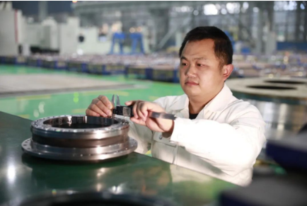 工作以來,周虎同志以精益求精、精雕細琢的工匠精神打造每個產品。燃氣輪機產品被譽為制造業皇冠上的明珠,機匣零組件制造精度要求高,裝配質量控制嚴,其加工、裝配工藝技術代表了機械制造行業的最高水平,在25MW燃氣輪機過渡段機匣葉片裝配過程中,因葉片與機匣外環裝配為燕尾槽式的榫接結構,葉片榫頭與燕尾榫槽三面的接觸面積要求高達80%以上,需由鉗工拂配以達該指標。葉片榫頭拂配過程中,周虎采用銼刀銼削裝配面,利用其長期磨練掌握的良好手感,將銼削量誤差控制在0.005-0.01mm,大大減少了葉片試裝配次數,裝配效率顯著提升。在三峽升船機產品中服務過程中,其中某部件有一長達355mm的M225X6螺紋連接副裝配,螺紋副一端是高達8M的支撐桿組件,另一端是重達1.2T球頭,工藝文件制定了支撐桿組件在立式工位就位后裝配球頭,周虎同志識別了在該工位裝配,存在球頭重量大,對中、旋轉困難,螺紋裝配易卡死,高空作業安全隱患大等裝配風險,提出采用工裝臥式工位裝配的建議,并采用工裝配合葫蘆吊,手動旋轉進行球頭螺紋裝配,順利完成該大型細牙螺紋副的裝配,得到用戶贊揚。